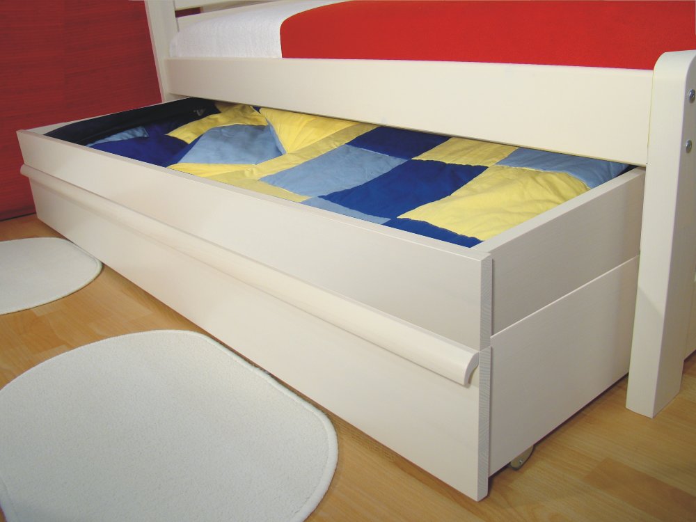Bílý senior úložný prostor z masivu DOREMI SENIOR 1/1 je určen pod zvýšené senior postele naší produkce. Zvýšený bílý úložný prostor DOREMI SENIOR 1/1 skýtá maximální prostor pro uložení objemných lůžkovin. Madlo bílého senior úložného prostoru svým tvarem koresponduje s madly nočních stolků, komod a skříní. Zvýšený celý úložný prostor je pro svou prostornost a moderní konstrukci (čelní deska bez viditelných šroubů) velmi oblíben. Pro snadnou manipulaci je bílý zvýšený úložný prostor z masivu opatřen kolečky. Vysoký úložný prostor je vyráběn v povrchové úpravě čirý lak, bílý lak nebo různé odstíny moření, vše zdravotně nezávadné.