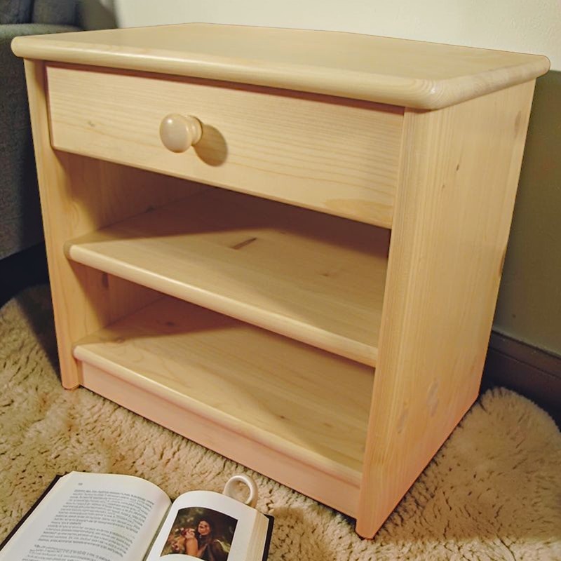 Dřevěný noční stolek MARTIN je praktickým doplňkem k posteli do dětského pokoje nebo ložnice. Noční stolek je vyroben ze smrkového masivu s možností volby kulaté úchytky nebo madýlka. Disponuje šuplíkem a praktickou policí k odložení knihy nebo časopisu.